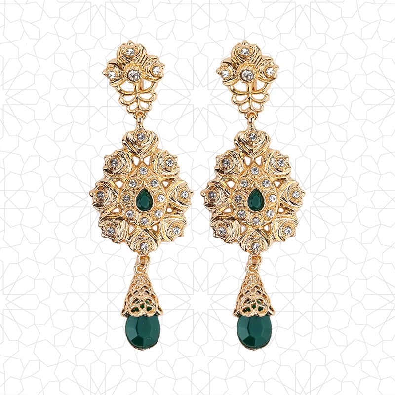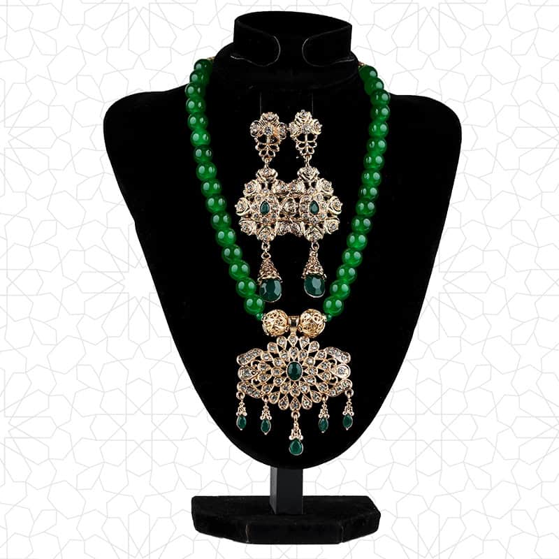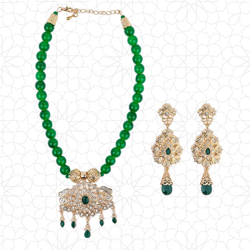 1set Fashion Arabic Women Beads Choker Necklace Long Drop Earring Morocc Bridal Jewelry Set Gold Color Tassels Pendant