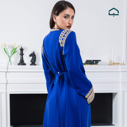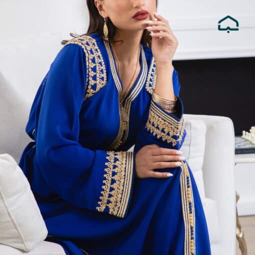 Royal Blue Crêpe Caftan with Golden Embroidery